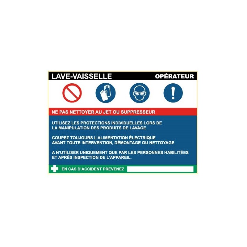 Commandez vos fiches de travail : lave vaisselle à coller ou à fixer dans vos espaces de travail.
