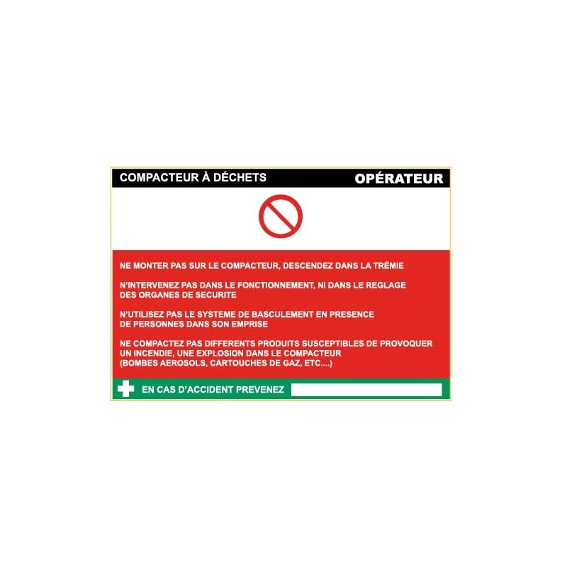 Commandez vos fiches de travail : compacteur à déchets à coller ou à fixer dans vos espaces de travail.