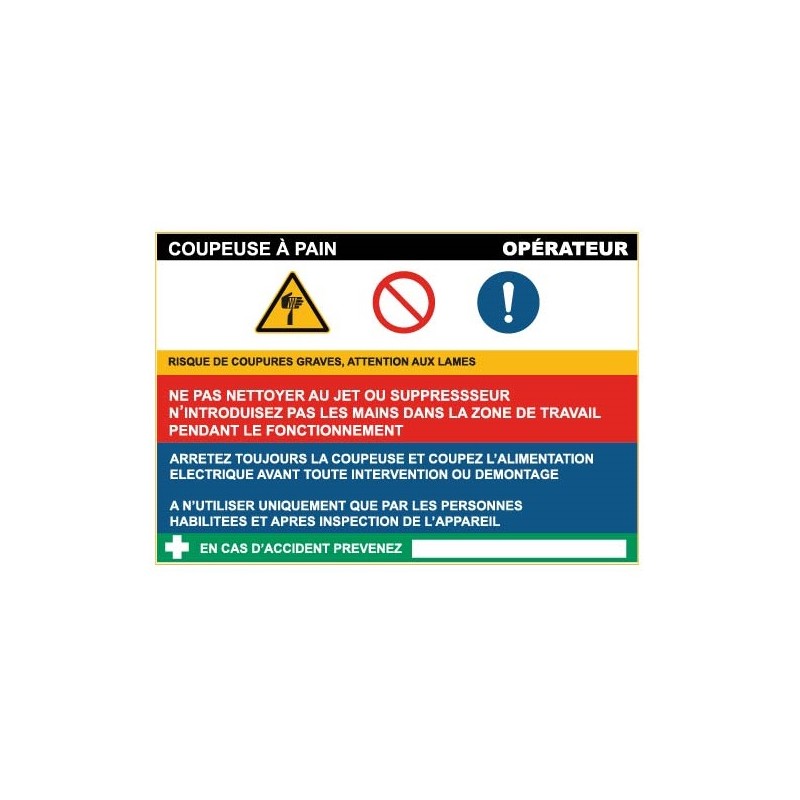 Commandez vos fiches de travail : coupeuse pain à coller ou à fixer dans vos espaces de travail.