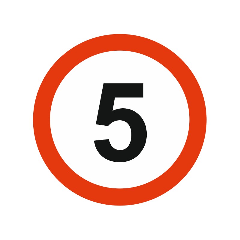 View larger Commandez vos panneaux limitation vitesse 5 KM/H à coller ou à fixer dans vos locaux pour informer vos employés ou clients.