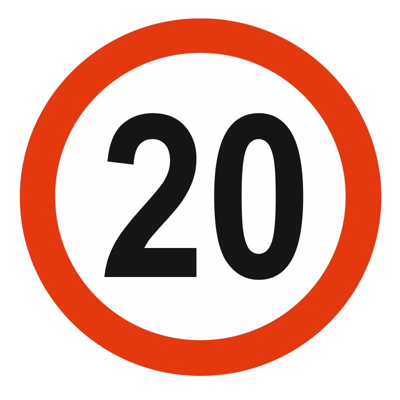 View larger Commandez vos panneaux limitation vitesse 20 KM/H à coller ou à fixer dans vos locaux pour informer vos employés ou clients.