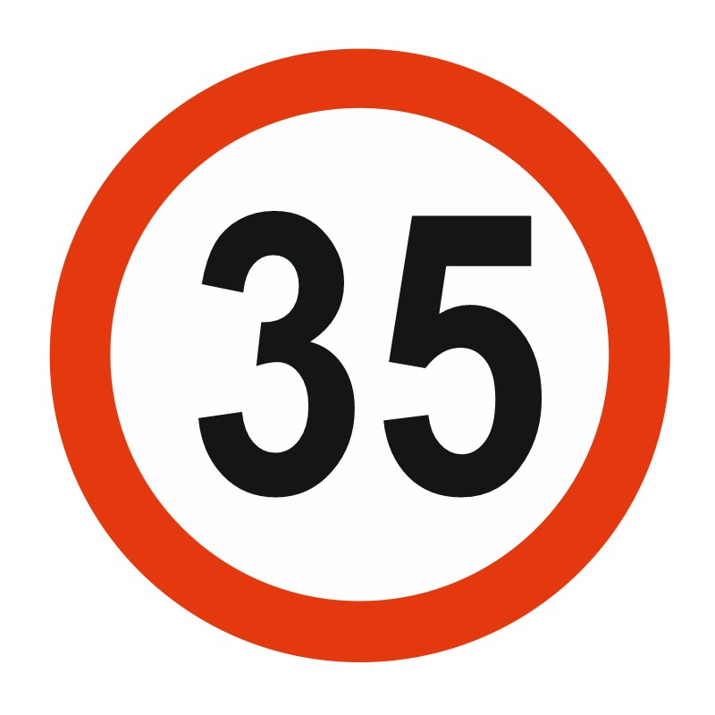 View larger Commandez vos panneaux limitation vitesse 35 KM/H à coller ou à fixer dans vos locaux pour informer vos employés ou clients.