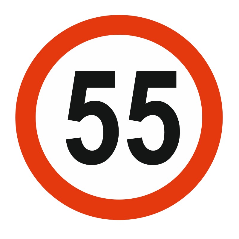 View larger Commandez vos panneaux limitation vitesse 55 KM/H à coller ou à fixer dans vos locaux pour informer vos employés ou clients.