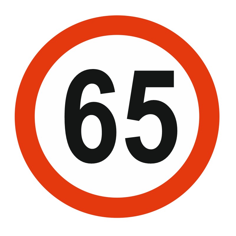 View larger Commandez vos panneaux limitation vitesse 65 KM/H à coller ou à fixer dans vos locaux pour informer vos employés ou clients.
