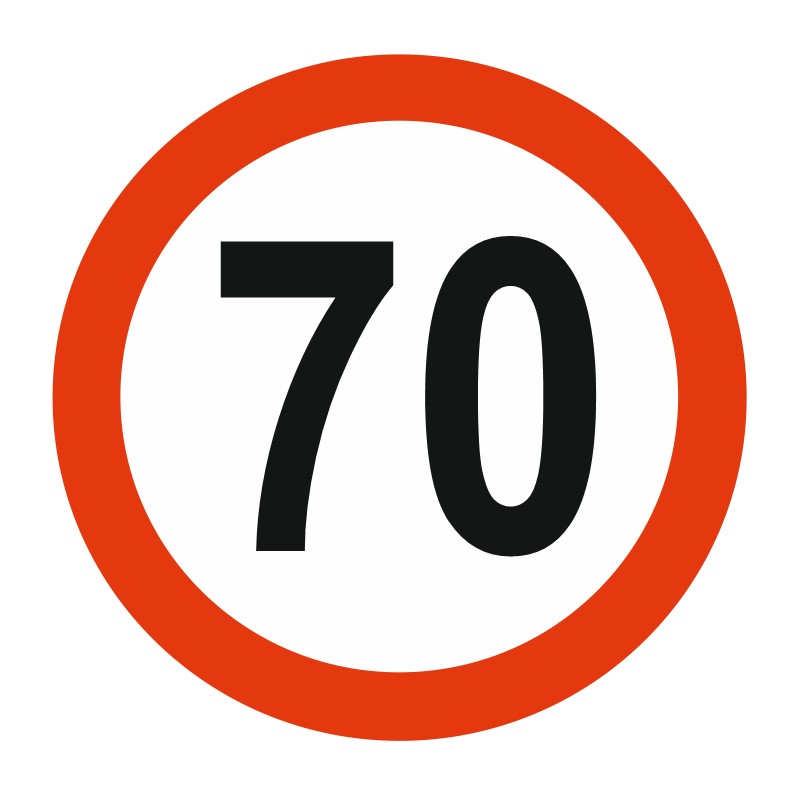 View larger Commandez vos panneaux limitation vitesse 70 KM/H à coller ou à fixer dans vos locaux pour informer vos employés ou clients.