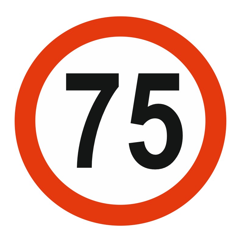 View larger Commandez vos panneaux limitation vitesse 75 KM/H à coller ou à fixer dans vos locaux pour informer vos employés ou clients.