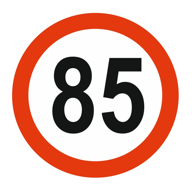 View larger Commandez vos panneaux limitation vitesse 85 KM/H à coller ou à fixer dans vos locaux pour informer vos employés ou clients.