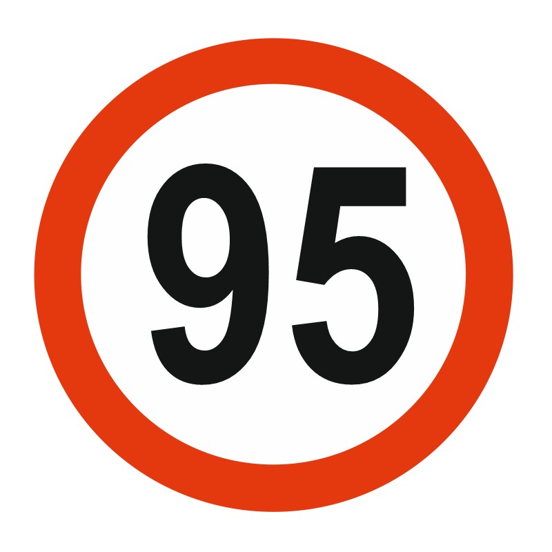 View larger Commandez vos panneaux limitation vitesse 95 KM/H à coller ou à fixer dans vos locaux pour informer vos employés ou clients.