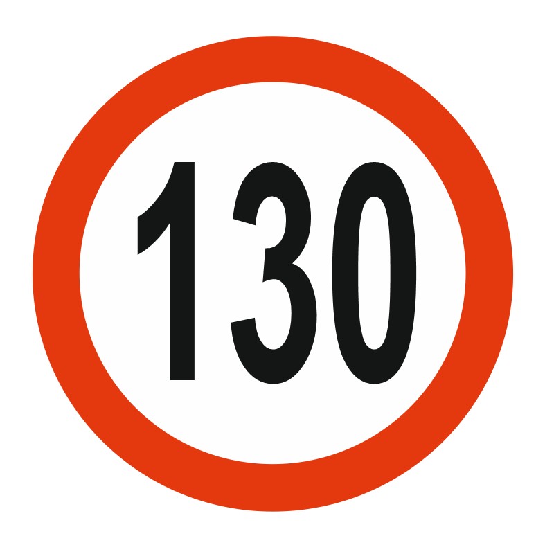 View larger Commandez vos panneaux limitation vitesse 130 KM/H à coller ou à fixer dans vos locaux pour informer vos employés ou clients.