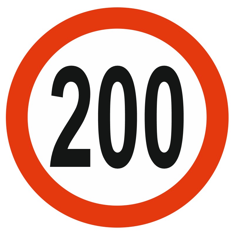 View larger Commandez vos panneaux limitation vitesse 200 KM/H à coller ou à fixer dans vos locaux pour informer vos employés ou clients.