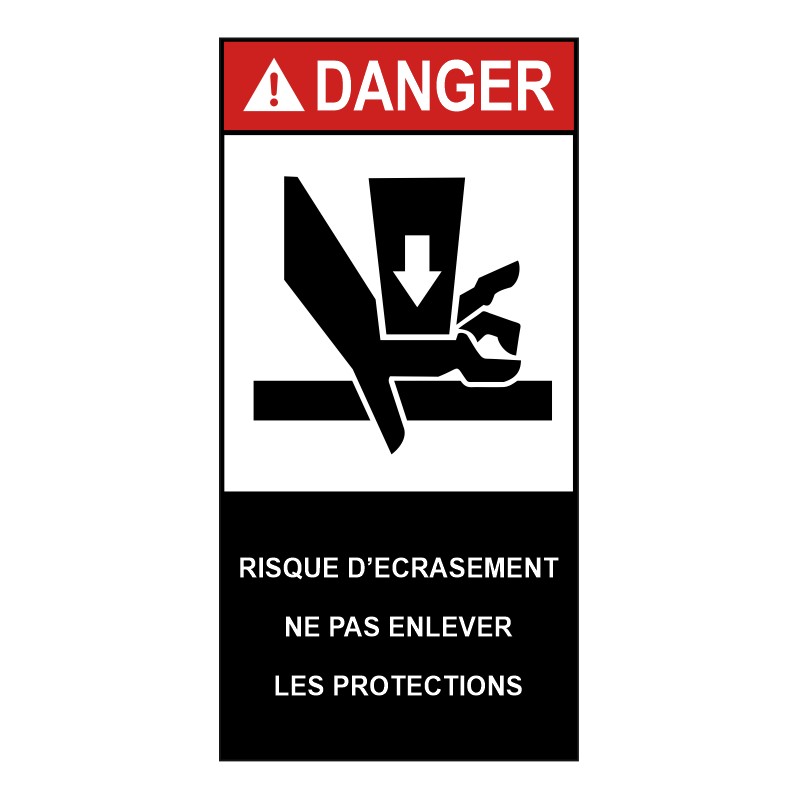 Autocollant ANSI Z535 - Risque d'écrasement ne pas enlever les protections