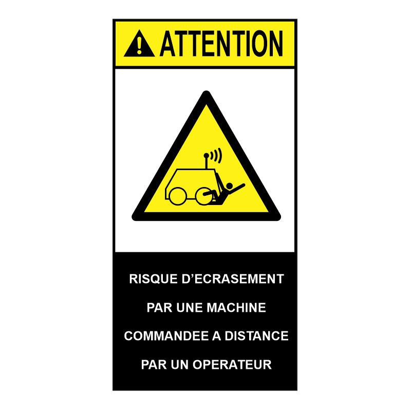 Autocollant ANSI Z535 - risque d'écrasement machien commandée à distance