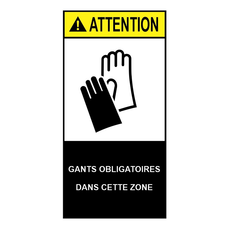 Autocollant ANSI Z535 - gants obligatoire dans cette zone