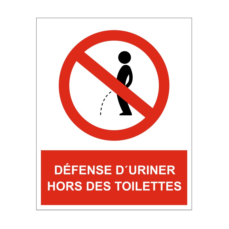 Commandez vos panneaux et autocollants défense d'uriner hors des toilettes à coller ou à fixer dans vos locaux pour informer vos employés ou clients.