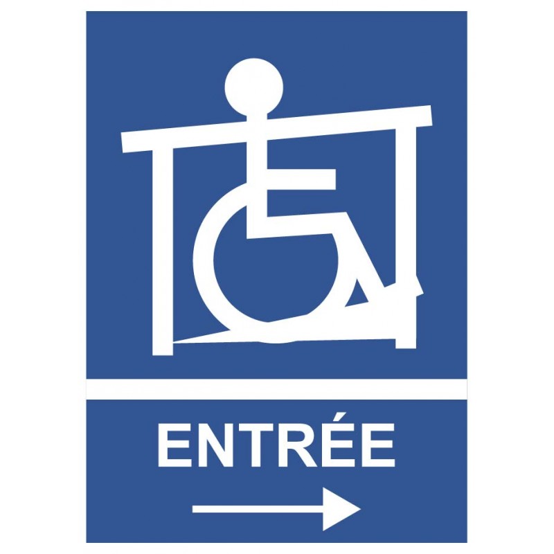 View larger Commandez vos panneaux ou autocollants handicap entrée rampe droite à coller ou fixer sur vos locaux.