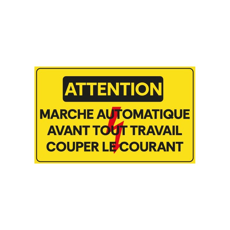 Panneau ou autocollant attention marche automatique couper courant pour la signalétique de votre société.