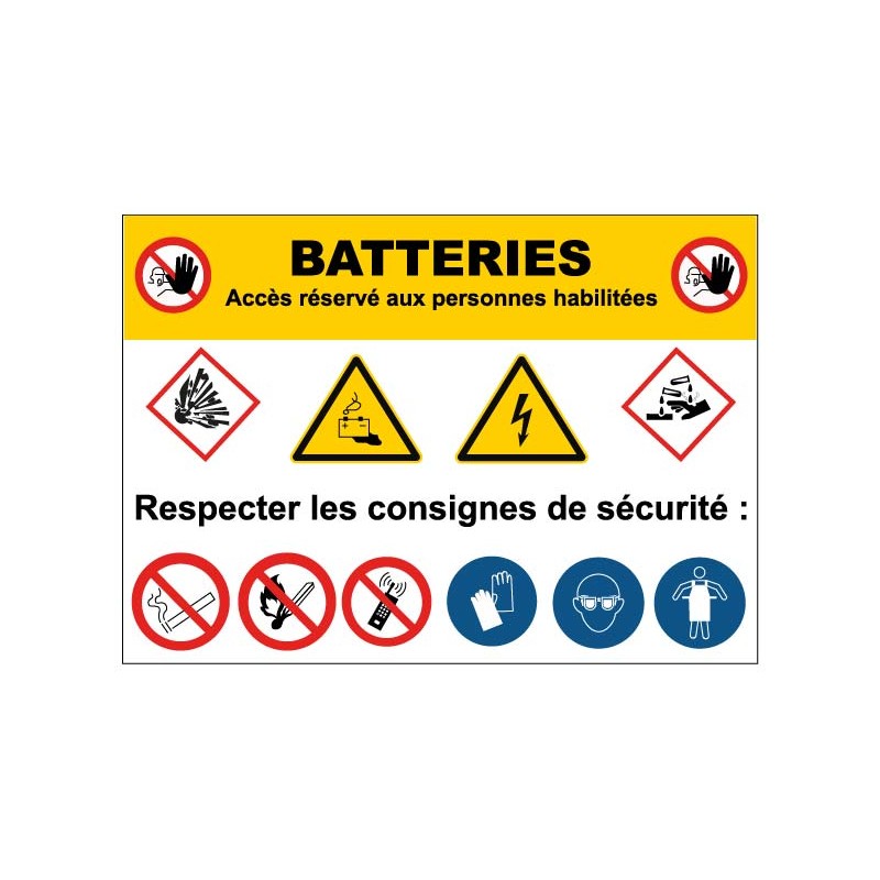 Panneau ou autocollant danger batterie pour la signalétique de votre société.