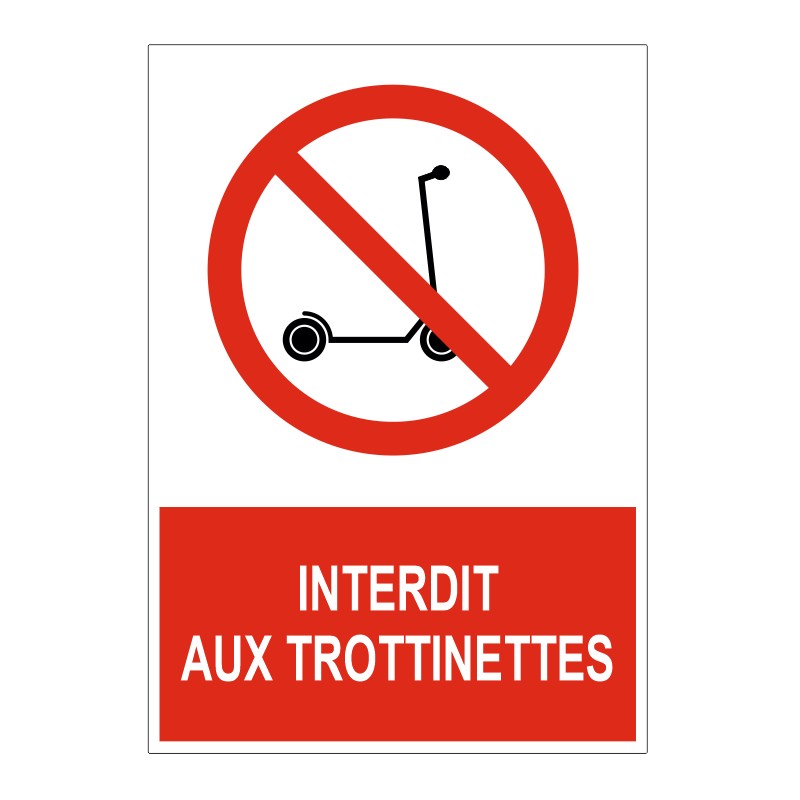 Commandez vos panneaux trottinette interdit à coller ou à fixer pour informer votre public ou usagers.