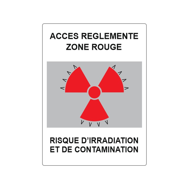 View larger Commandez vos panneaux accès réglementé - zone rouge - contamination irradiation coller ou à fixer dans vos locaux.
