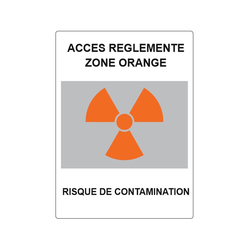 View larger Commandez vos panneaux accès réglementé - zone orange - contamination coller ou à fixer dans vos locaux.