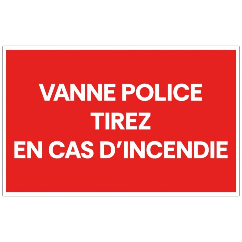 View larger Commandez vos panneaux vanne police tirez en cas d'incendie coller ou à fixer pour la signalétique de votre batiment.